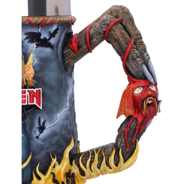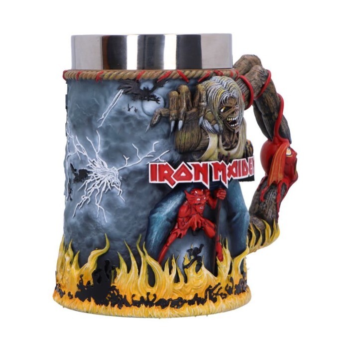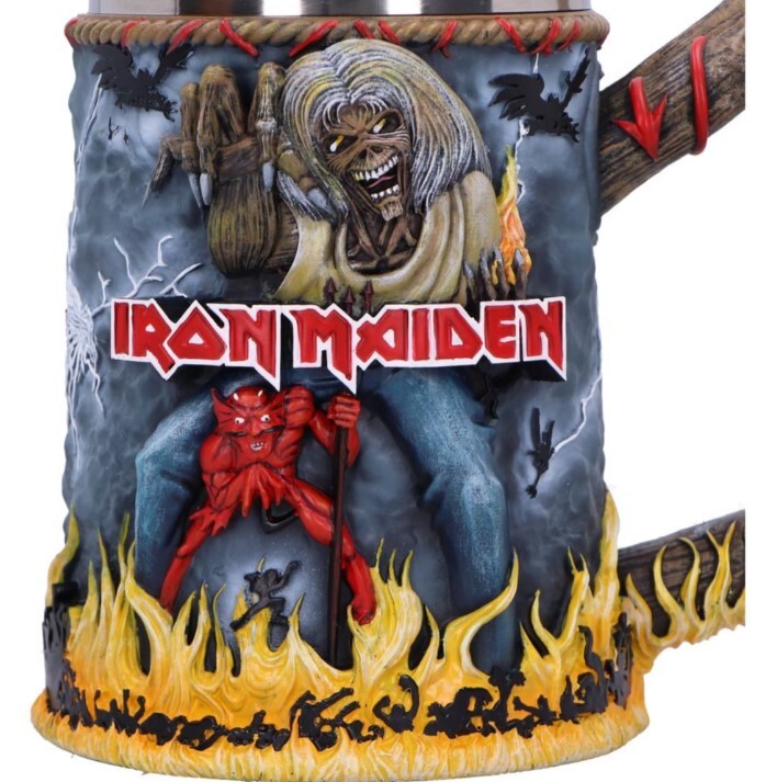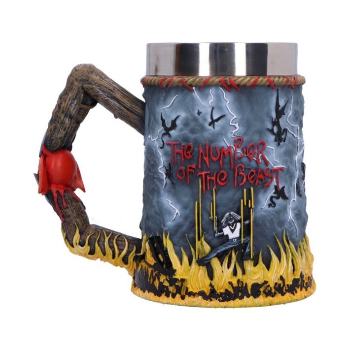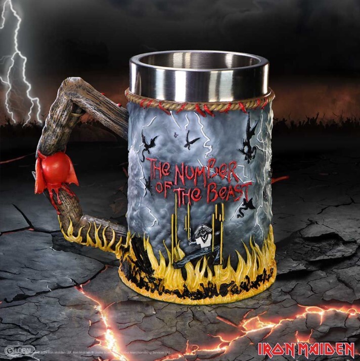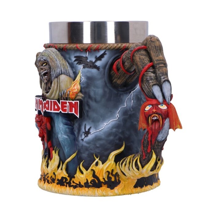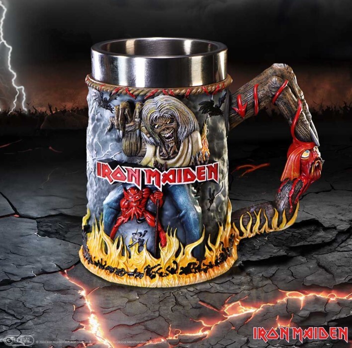 Oficiální půllitr Iron Maiden, ručně malovaný, s ikonickou scénou z alba The Number of the Beast; vyjímatelná nerezová vložka pro snadné mytí, vhodný na teplé i studené nápoje.