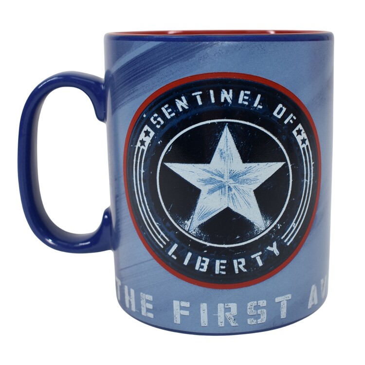 Stylový hrnek s objemem 460 ml oslavující Kapitána Ameriku, přezdívaného „Strážce svobody“ a prvního člena Avengers.