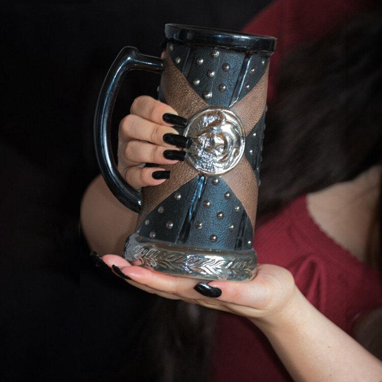 Zaklínačský korbel – nyní si můžete vychutnat svou oblíbenou medovinu nebo lektvar ve stylu skutečného mistra meče. Tento krásný hnědý korbel se symbolem školy Vlka se stane skvělým společníkem na vašich dobrodružstvích. S objemem 750 ml, to je dostatek místa pro magické nápoje, teplý čaj nebo pořádně velkou kávu.