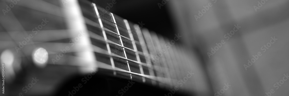 Fotografie Hübsches, schwarzes Holz Gitarren Musikinstrument für Rockmusik in Oktav Resonan