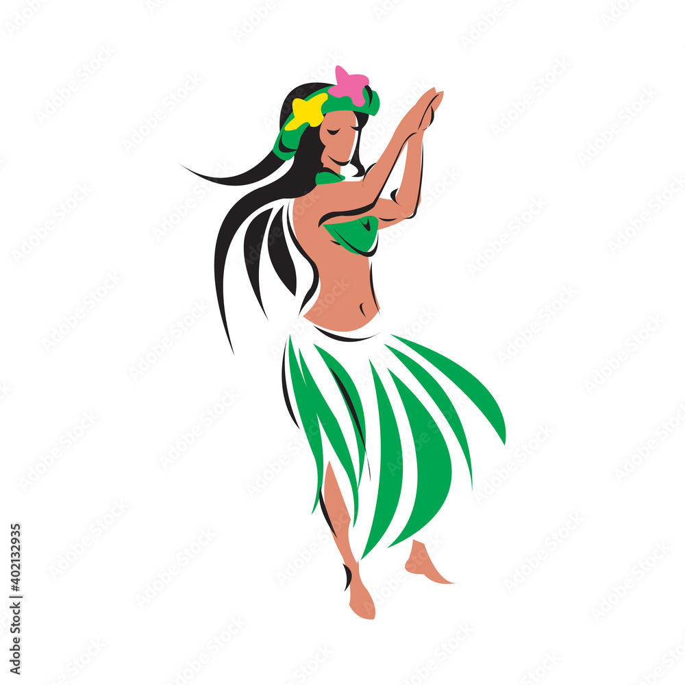 Fotografie Hula dancer woman vector illustration isolated on a white background in EPS10