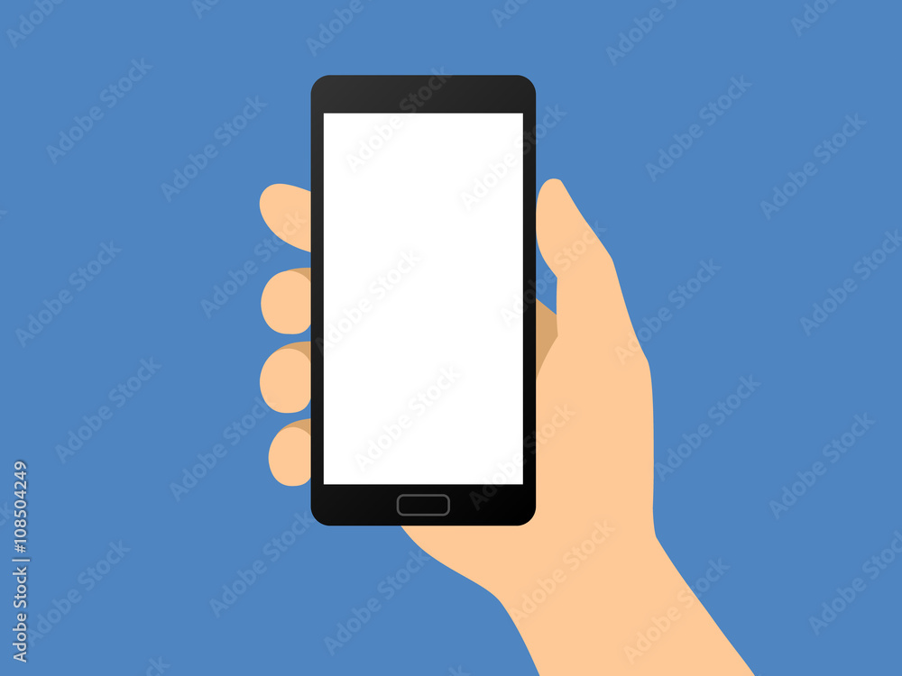 Fotografie Human hand holding smartphone / smart phone flat vector illustration