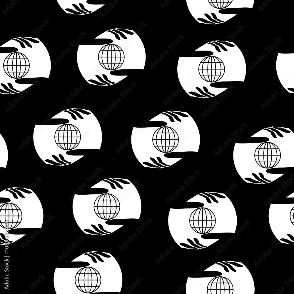 Fotografie Human hands holding Earth globe icon isolated seamless pattern on black backgrou