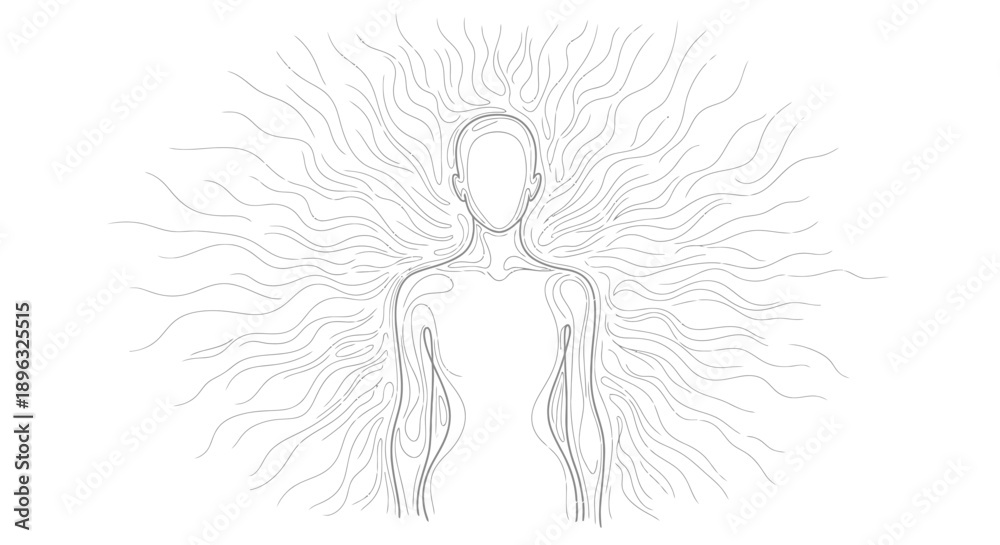 Fotografie Human silhouette with radiating energy lines vector illustration