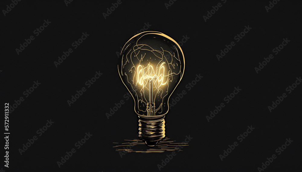 Fotografie Illuminated Light Bulb Concept on Dark Background, Dark Academia Inspired, Ideas