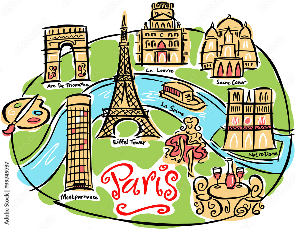 Obraz na plátně Barevná ilustrovaná mapa Paříže