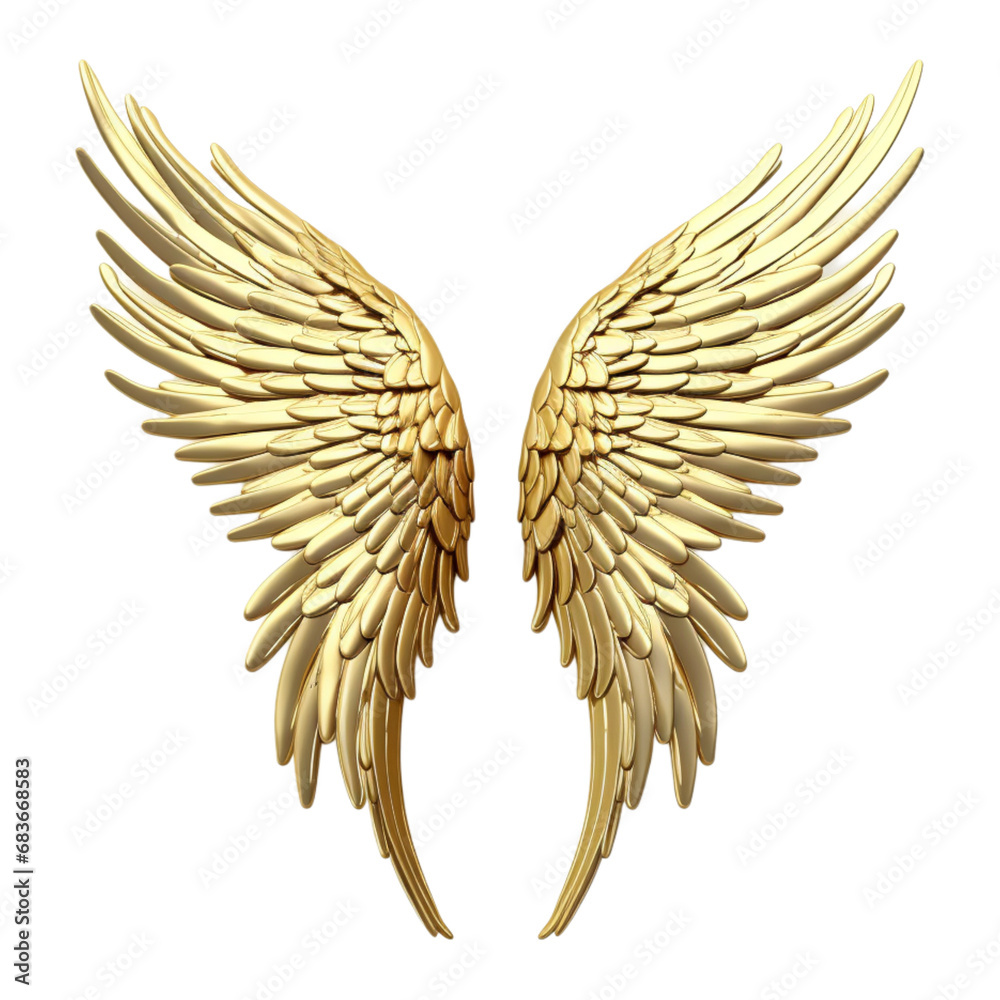 Fotografie Illustration of a big golden wings, isolated in the transparent background
