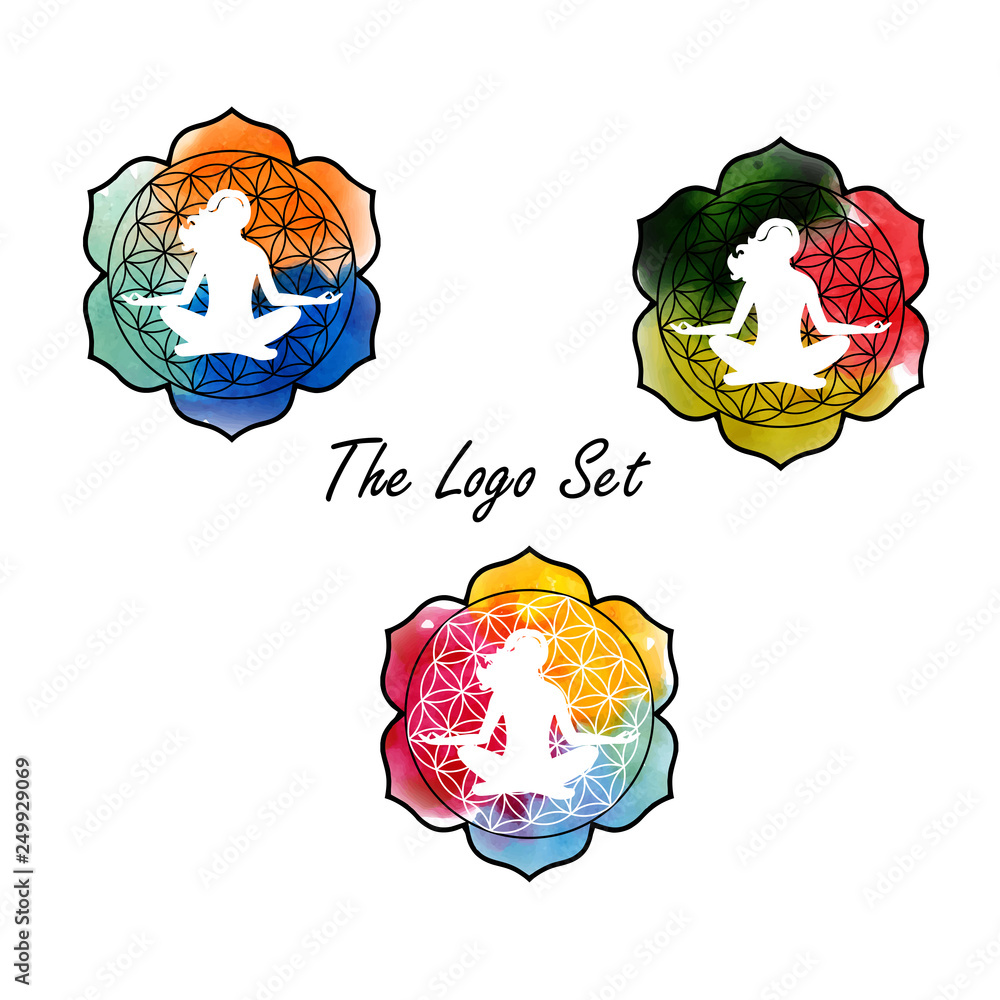 Fotografie illustration with mandala on a yoga theme with girl.