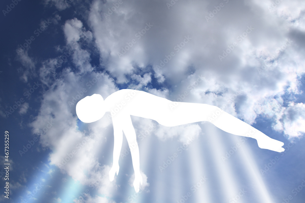 Fotografie immortal soul of the deceased ascends to heaven, disembodied ghost of a person,