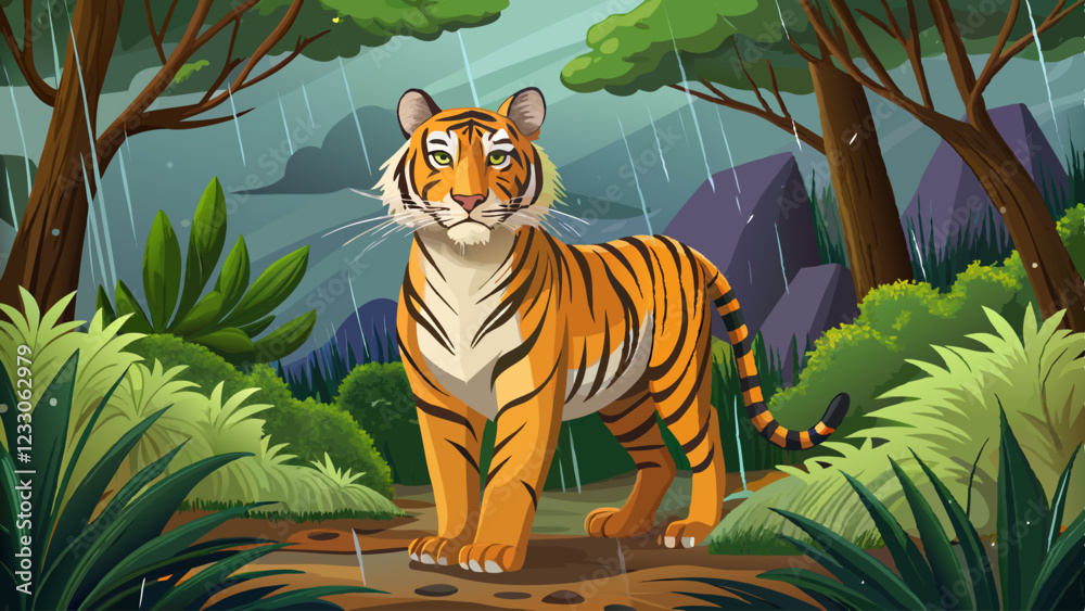 Fotografie Indian tiger male with first rain, wild animal in the nature habitat, Ranthambore, India