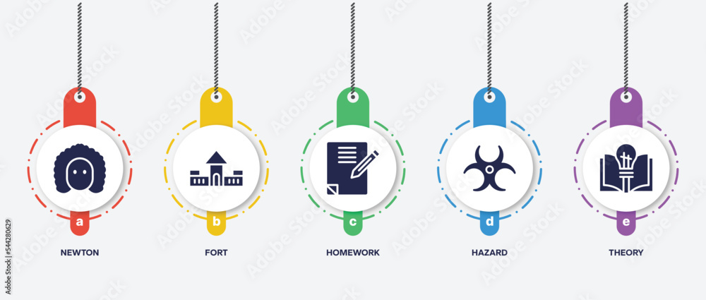Fotografie infographic element template with biochemistry filled icons such as newton, fort, homework, hazard, theory vector