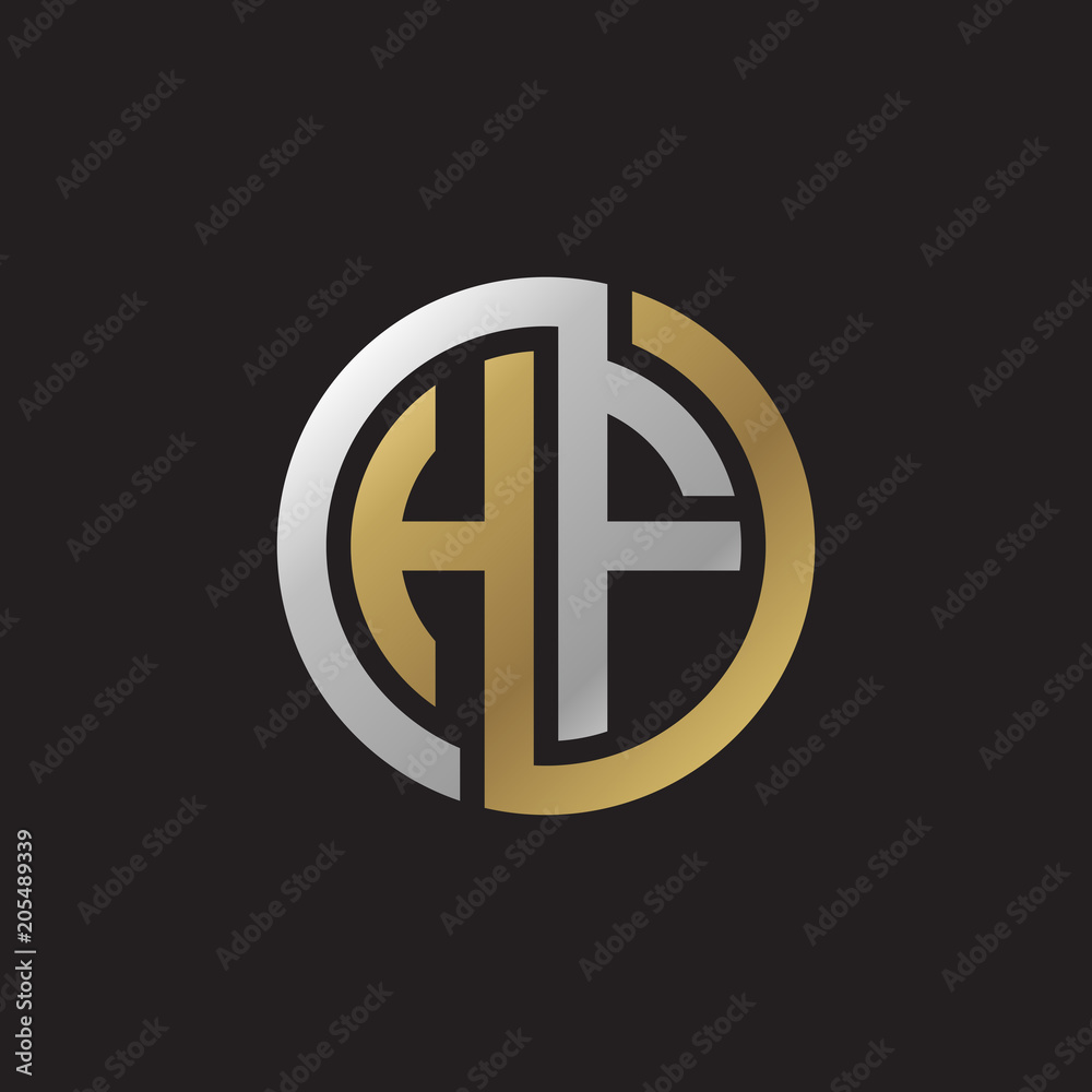 Obraz na plátně Initial letter HF, looping line, circle shape logo, silver gold color on black b