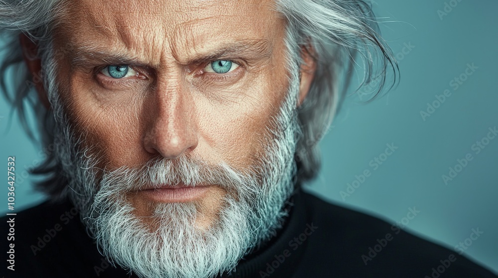 Fotografie intense portrait of a distinguished elderly man with grey hair and beard on dark