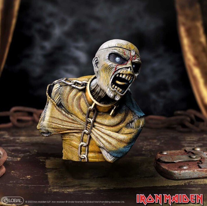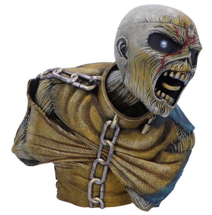 Prokaž svou oddanost Monsters of Rock s touto elektrizující a oficiálně licencovanou bustou Iron Maiden Piece of Mind (malá verze). Zobrazuje ikonického Eddieho, jak se v předklonu zmítá ve svěrací kazajce a řetězech, připraven zastrašit každého, kdo projde kolem, svým děsivým pohledem. Odlitá z vysoce kvalitní pryskyřice a mistrně ručně malovaná, tato busta je dokonalým sběratelským kouskem pro každého fanouška Iron Maiden – přinese do tvé sbírky dávku strachu i vzrušení.