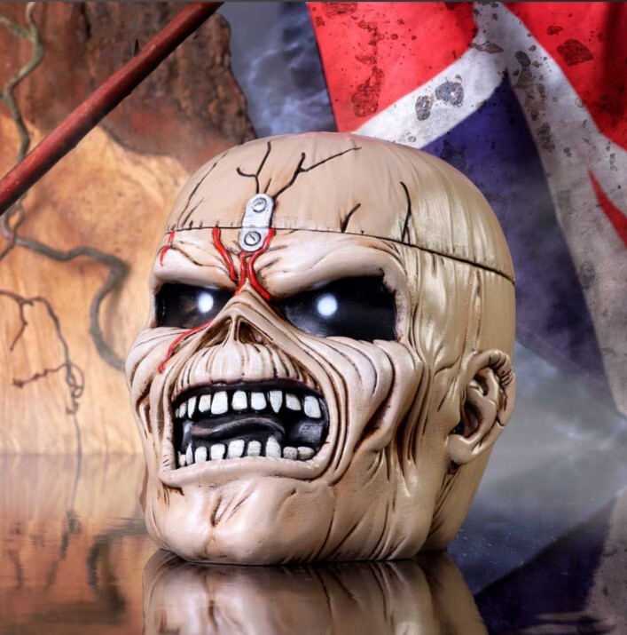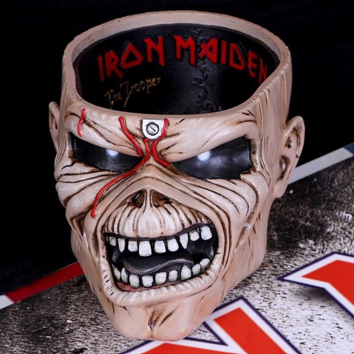 Iron Maiden Trooper Box: Prokaž svou oddanost Monsters of Rock s touto elektrizující a oficiálně licencovanou úložnou krabičkou Iron Maiden "The Trooper", exkluzivně od Nemesis Now. Jak se ukazuje, hlava Eddieho z "The Trooper" slouží jako parádní úložný box. Tento zombie-maskot zírá vpřed a děsí každého, kdo se přiblíží.