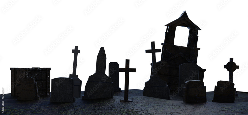 Obraz na plátně Isolated 3d render illustration of horror scary cemetery graveyard landscape