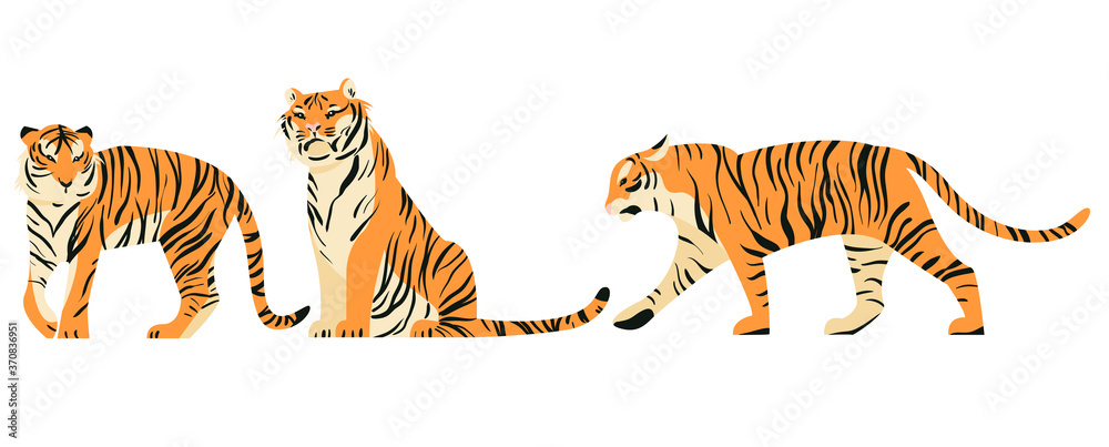 Obraz na plátně Isolated on white set of tigers in side view vector illustration