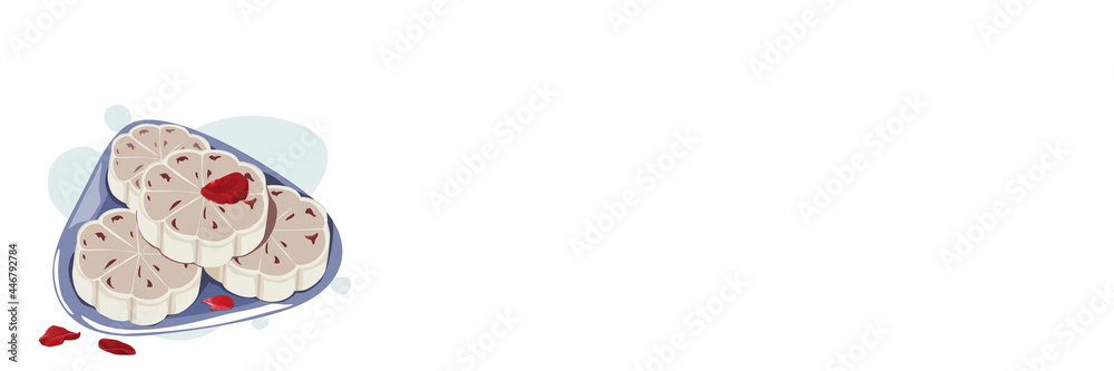 Obraz na plátně Isolated plate of rose mooncake filled sweet red bean paste and red rose served on white plate
