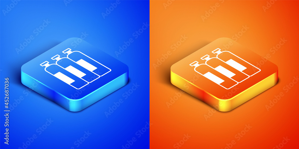 Fotografie Isometric Industrial gas cylinder tank for all inert and mixed inert gases icon isolated on blue and orange background