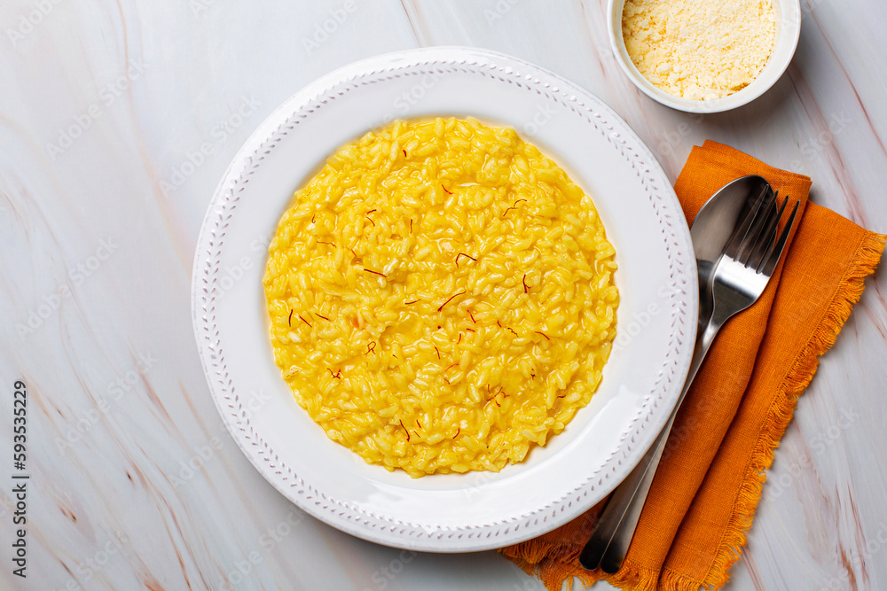 Fotografie Italian dish made from saffron, rice, butter, hard cheese and vegetable broth