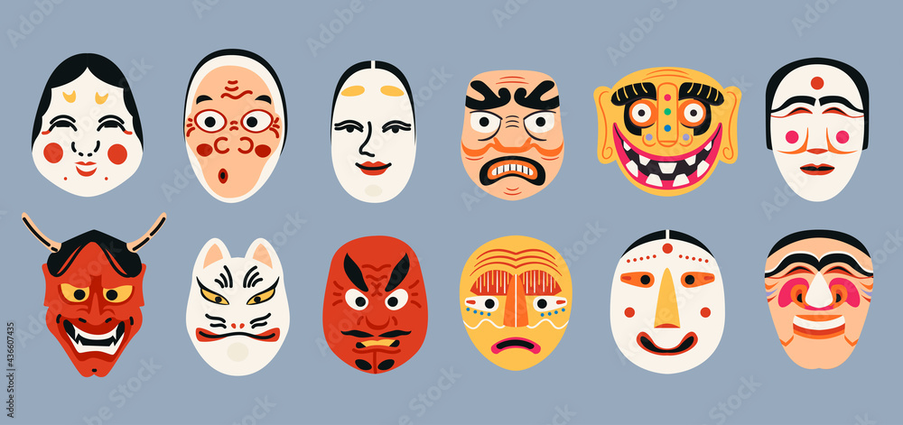 Obraz na plátně Japanese Kabuki Theater masks collection