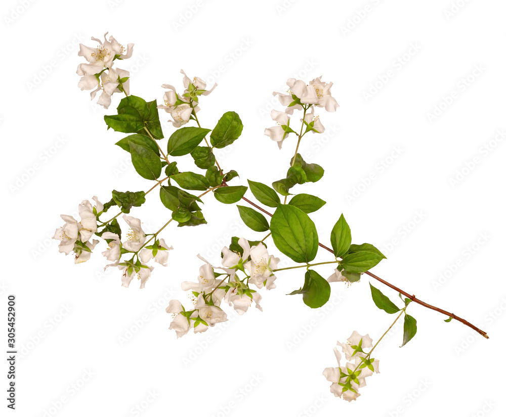 Fotografie Jasmine. The branch of Jasmine flowers on a white background