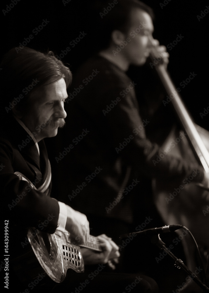 Obraz na plátně Jazz Guitarist and Double Bass player