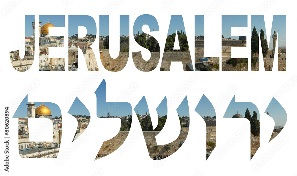 Fotografie Jerusalem - English and Hebrew with wailing wall letters