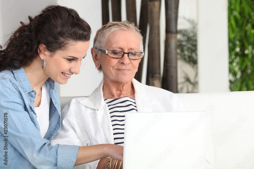 Fotografie Jeune femme aidant personne âgée