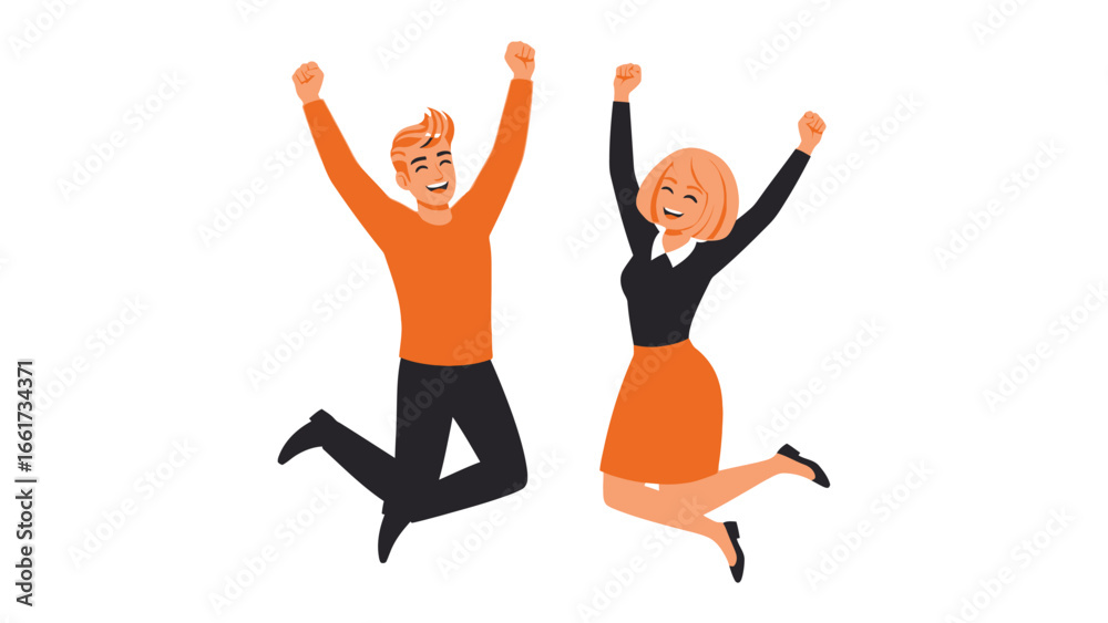 Obraz na plátně Joyful Jump: Two enthusiastic individuals leap into the air in a display of unadulterated excitement, symbolizing pure, uninhibited joy and shared happiness