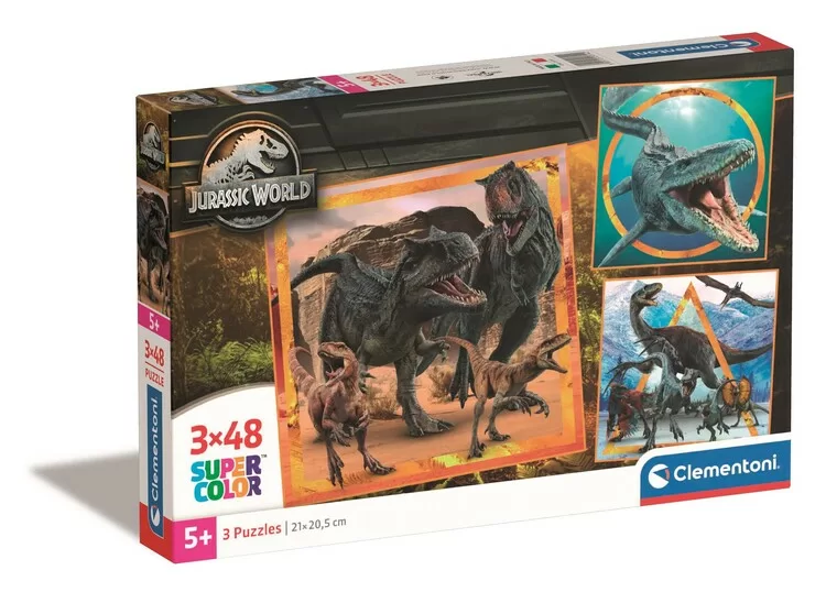 Sada 3 puzzle Jurassic World (3×48 dílků). Dinosauří dobrodružství vtáhne do hry, jasné barvy pomáhají s tříděním dílků. Děti si přirozeně trénují jemnou motoriku i soustředění, dílky hladce do sebe zapadají. Puzzle Clementoni vynikají ostrostí tisku, přesným výsekem a perfektním lícováním, takže skládání jde skoro samo. Baleno v robustní, elegantní krabici.
