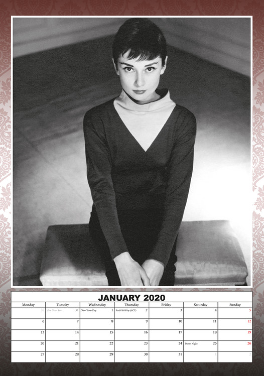 • Kalendář Audrey Hepburn můžete pověsit na každou zeď