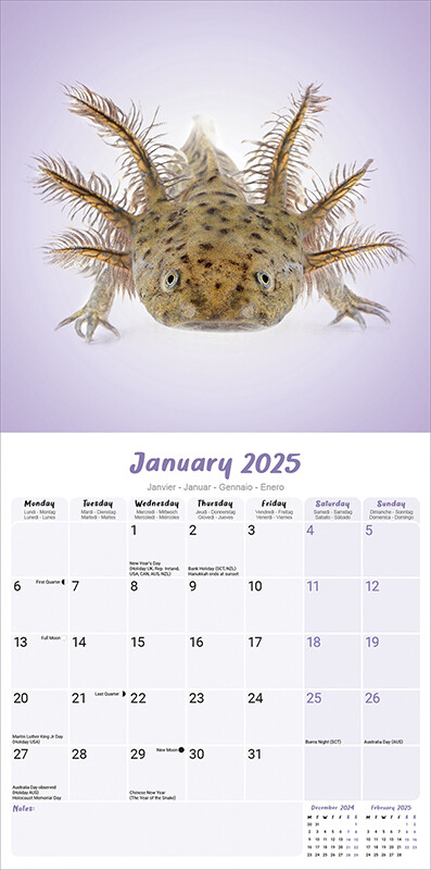 • Kalendář Axolotls můžete pověsit na každou zeď