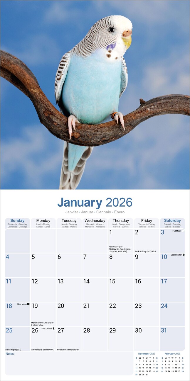 Kalendář 2026 Budgerigar