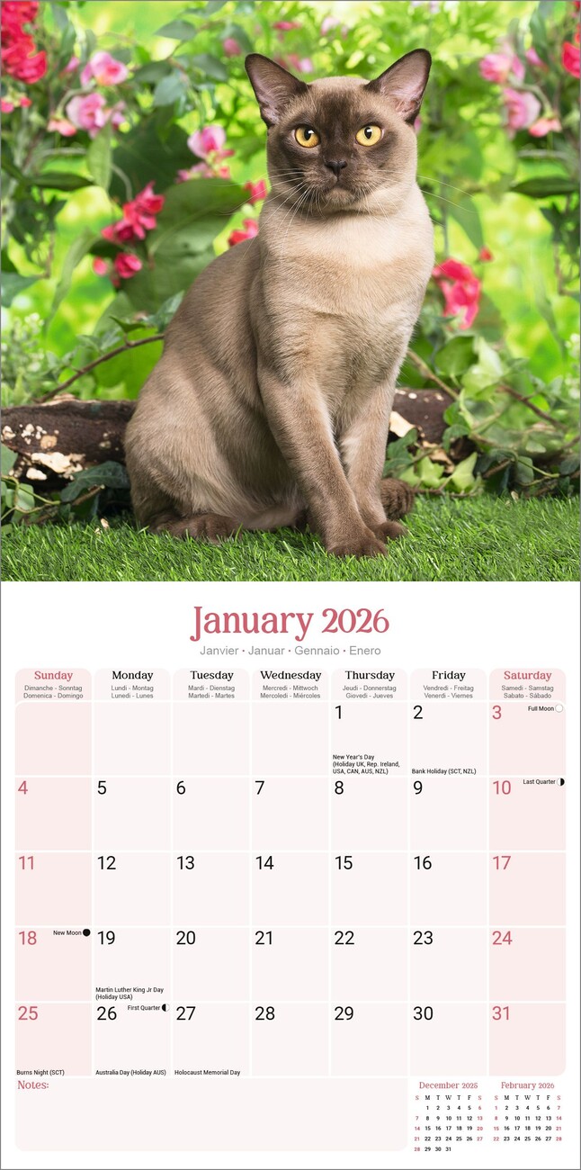 Kalendář 2026 Cats - Burmese