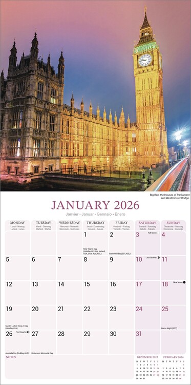 • Kalendář je v angličtině, proto obsahuje pouze anglické svátky