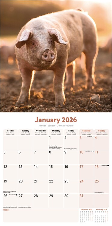 • Kalendář je v angličtině, proto obsahuje pouze anglické svátky
