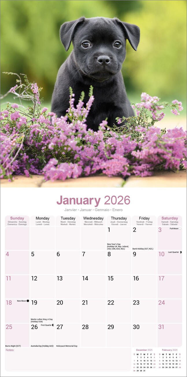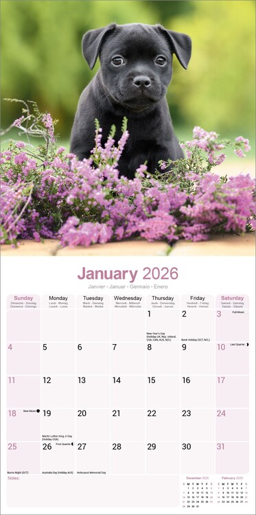 Kalendář 2026 Staffordshire Bull Terrier