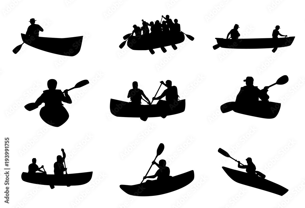 Obraz na plátně Kayaking and Rafting Silhouettes