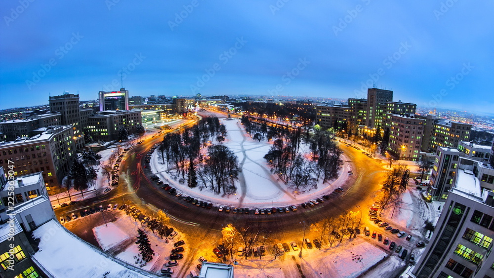 Fotografie Kharkiv city from above day to night timelapse. Ukraine.