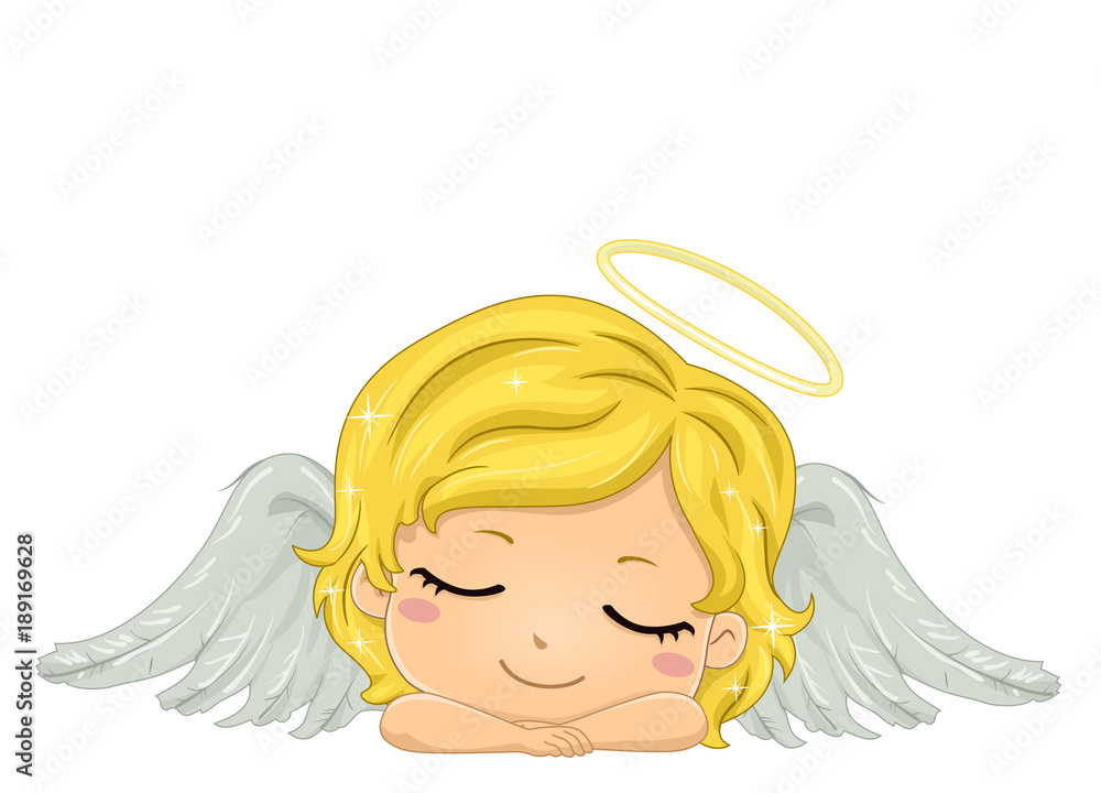 Obraz na plátně Kid Girl Angel Sleeping Illustration