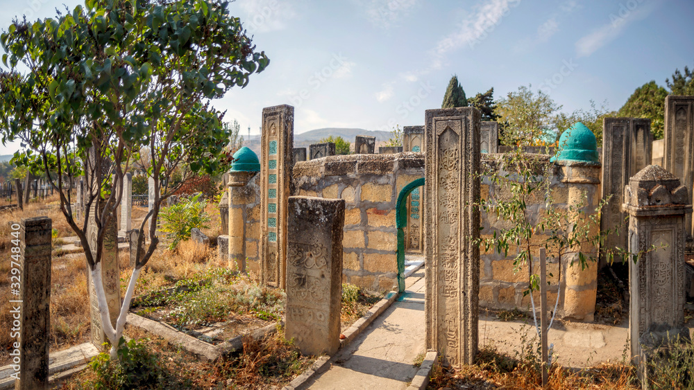 Fotografie Kirhlyar is a cemetery in Derbent Russia, one of the ancient burials in the Caucasus