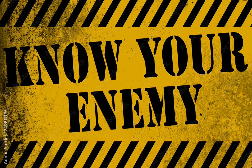 Fotografie Know your enemy sign yellow with stripes