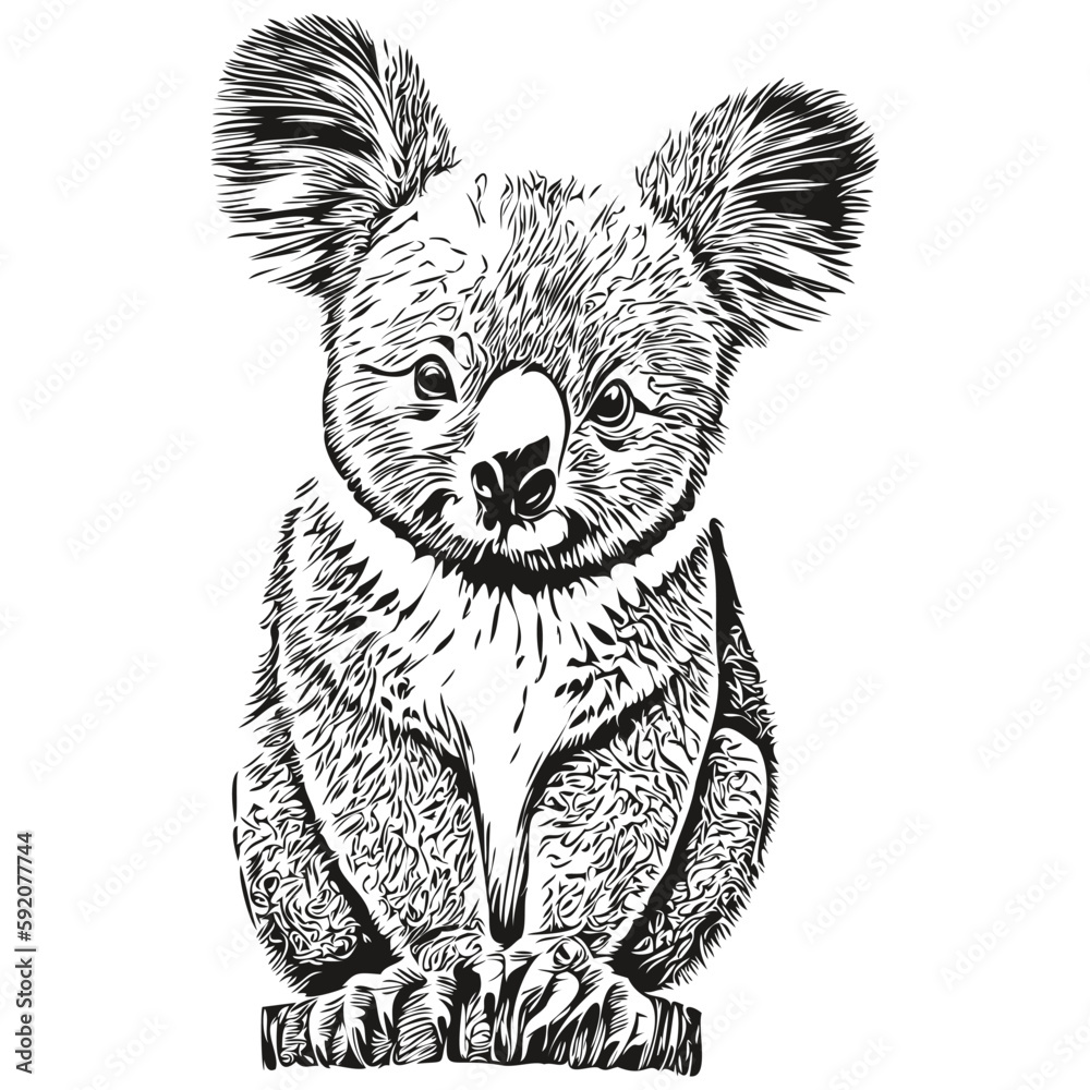 Fotografie Koala vector illustration line art drawing black and white koala bear