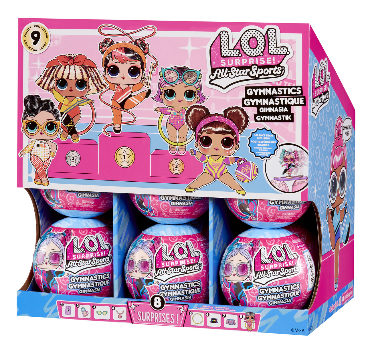 NOVÝ MÍČ: Otevři svůj NOVÝ inovativní L.O.L. Surprise! míč, který se promění v dokonalou rovnovážnou lať pro tvou panenku k vystoupení! TÉMA GYMNASTIKY: Tyto panenky jsou připravené překlápět, kotrhat a točit se cestou k získání vlastní gymnastické medaile! Panenka přichází s detailními gymnastickými doplňky jako stuha, míč nebo obruč, přesně jako skutečná gymnastka! Míčky jsou zasílány náhodně.