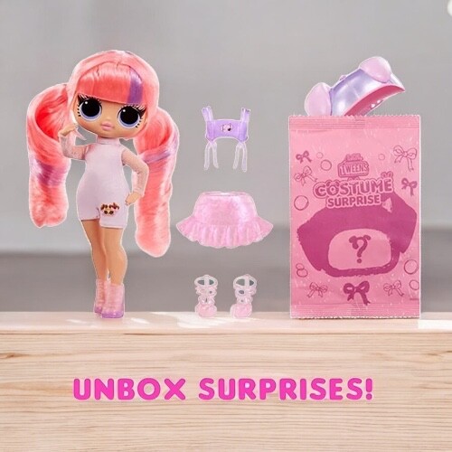 L.O.L. Surprise Tweens Costume Surprise představuje Panenku Ali Dance ukrytou uvnitř nafukovacího kostýmu zvířátka. Balení obsahuje 15 překvapení včetně módního outfitu, bot, doplňků a stojánku.