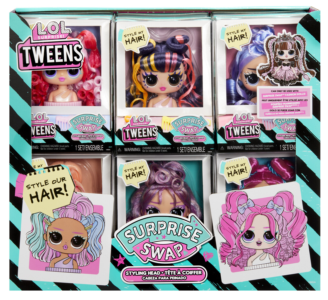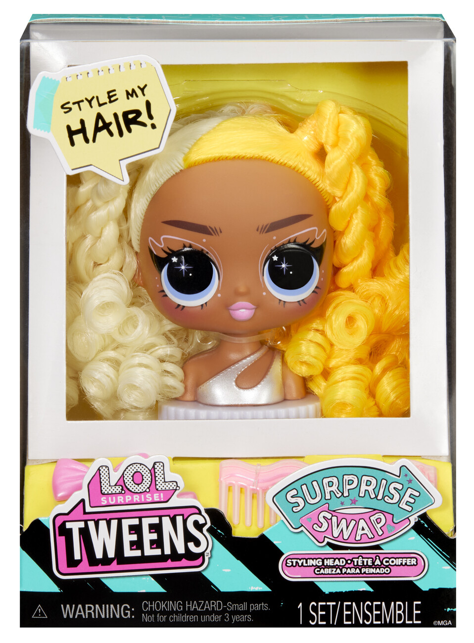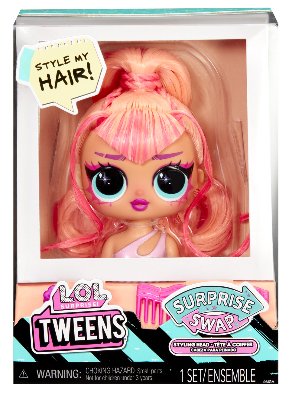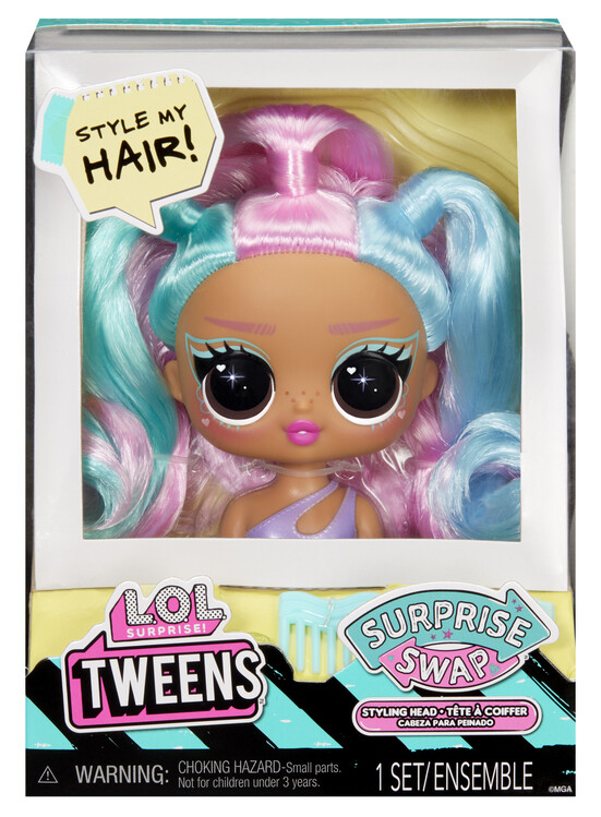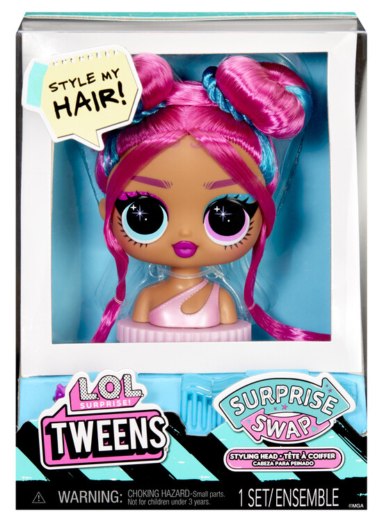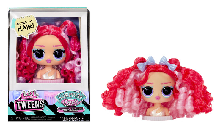 Nová česací hlava pro Tweens panenku! Vyměň si svou panenku za jinou. Nejedná se o velké balení. Balení obsahuje 1 hlavu panenky na výměnu, 3 doplňky. Nasbírej všech 9 a budeš mít celou kolekci.