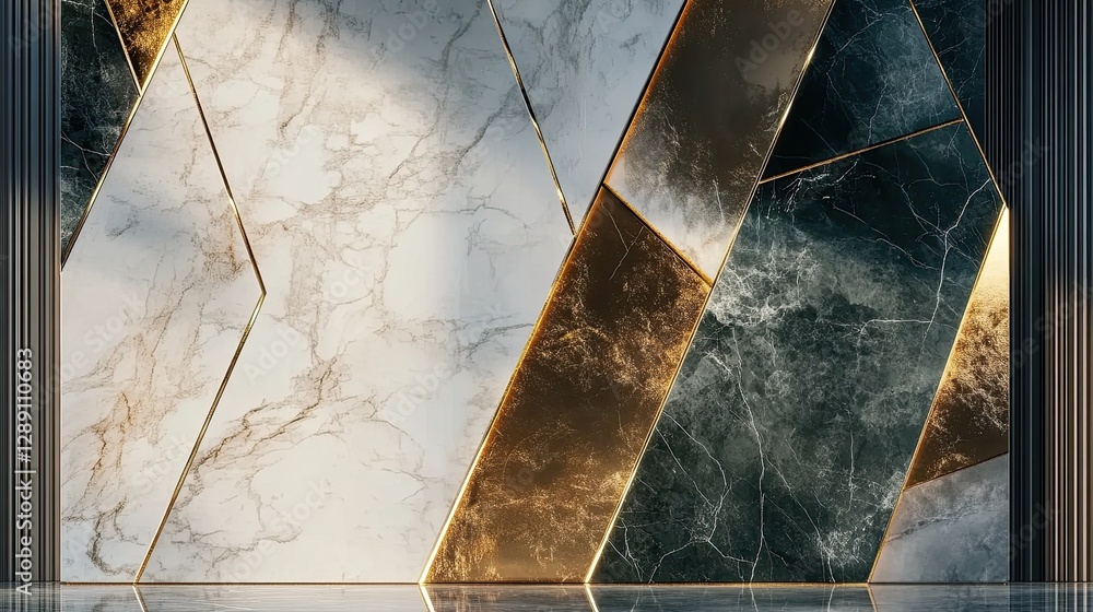 Fotografie Large marble slab with geometric strains of gold in art deco style