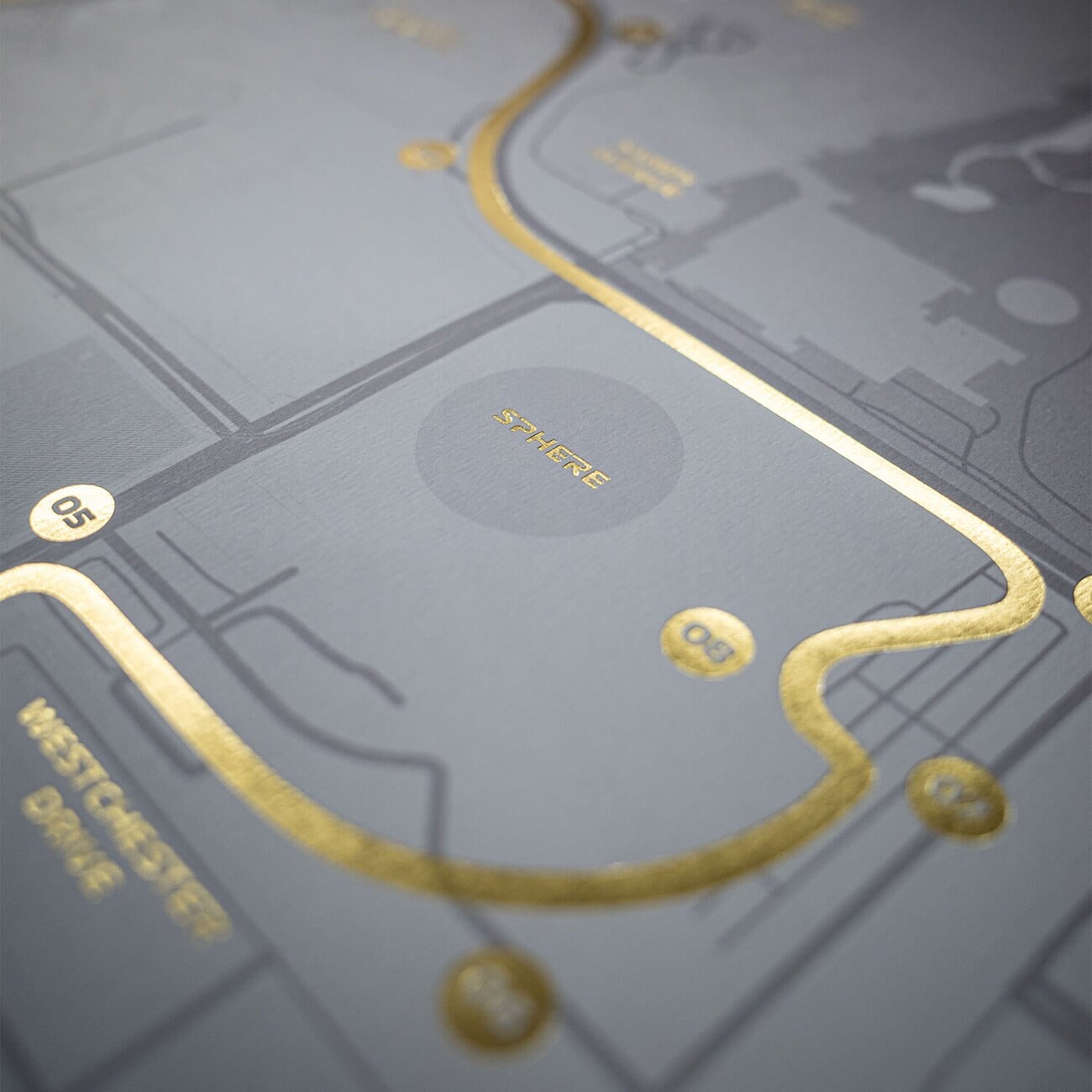The outline of the track is embossed with gold foil, making it stand out from the background even more. The white version of the poster accompanies its Collector's Edition counterpart, mirroring the previous launches consisting of two variants.