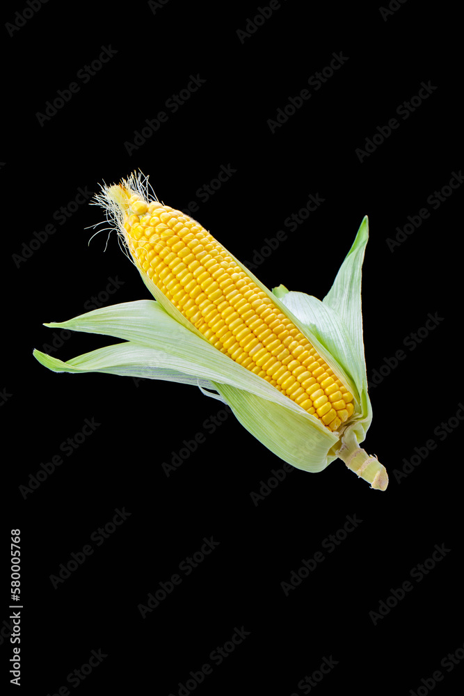 Fotografie Lean, plump, human, staple food, corn, black background, maize
